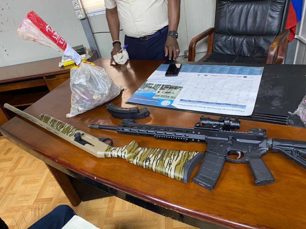 Nan yon konferans pou laprès, pòt pawòl Direksyon Depatmantal Lapolis Nòdwès la fè konnen fòs lòd yo mete men sou yon sak bal, yon chajè M4, ansanm ak de (2) fizi gwo kalib, ki se yon fizi kalib 12 ak yon fizi M4.